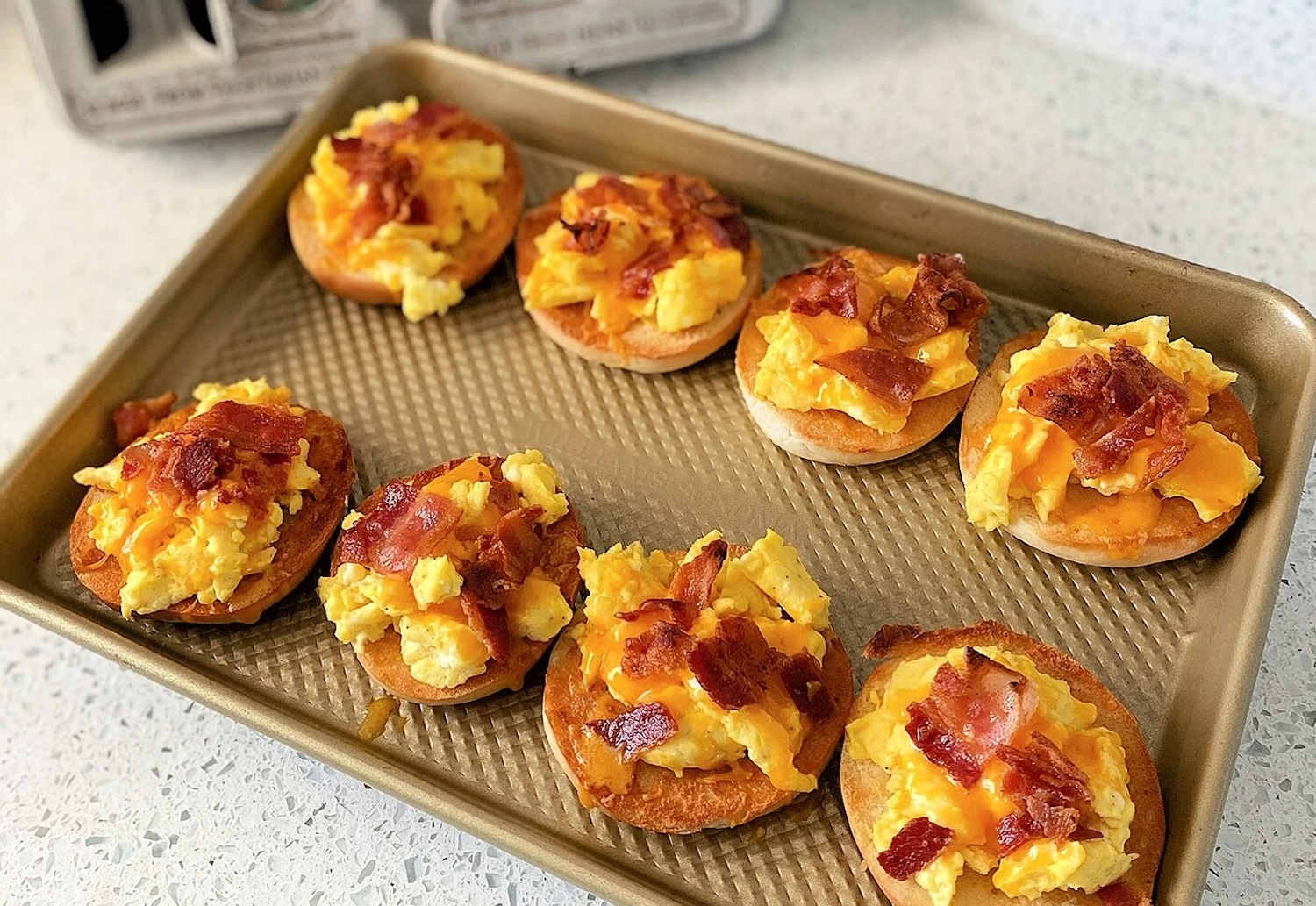 Wil je meer ‘ontbijt in één hap’? Ga dan voor bagel bites met roerei, kaas en bacon. Ze zijn speels, delen makkelijk en voelen als comfortfood zonder dat je een complete ovenschotel hoeft mee te sjouwen.