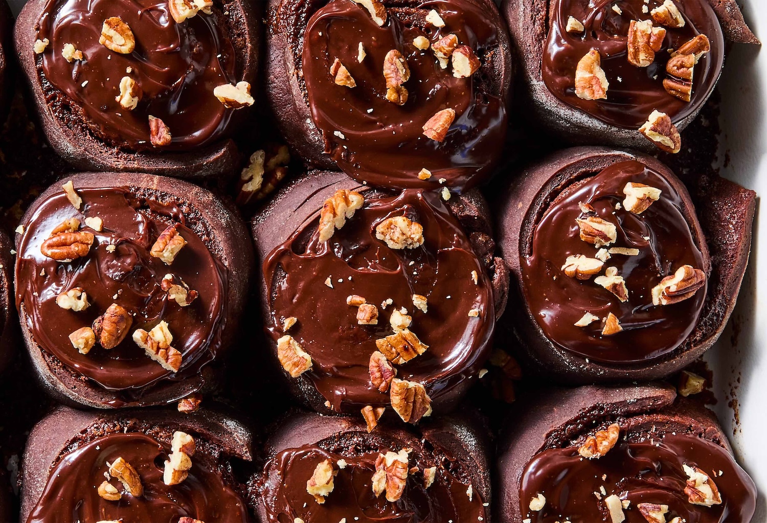 Er is altijd iemand op de potluck die roept dat hij “niet zo van zoet” is—en vervolgens drie keer terugloopt voor chocoladebrood. Chocolade-pecan kaneelrollen zijn zo’n gerecht dat ontbijt en dessert moeiteloos laat samensmelten.