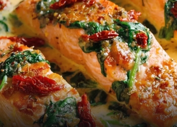 Iedereen raakt verslaafd aan deze romige Toscaanse zalm met zongedroogde tomaten
