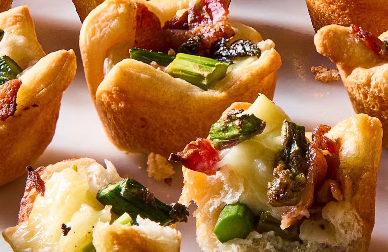 Geen mini-muffinvorm? Dan kun je ze ook op een bakplaat maken als kleine pakketjes, al worden ze dan wat minder ‘cup’-vormig. De smaak blijft hetzelfde: krokant deeg, zachte brie, zoute bacon en frisse asperges.